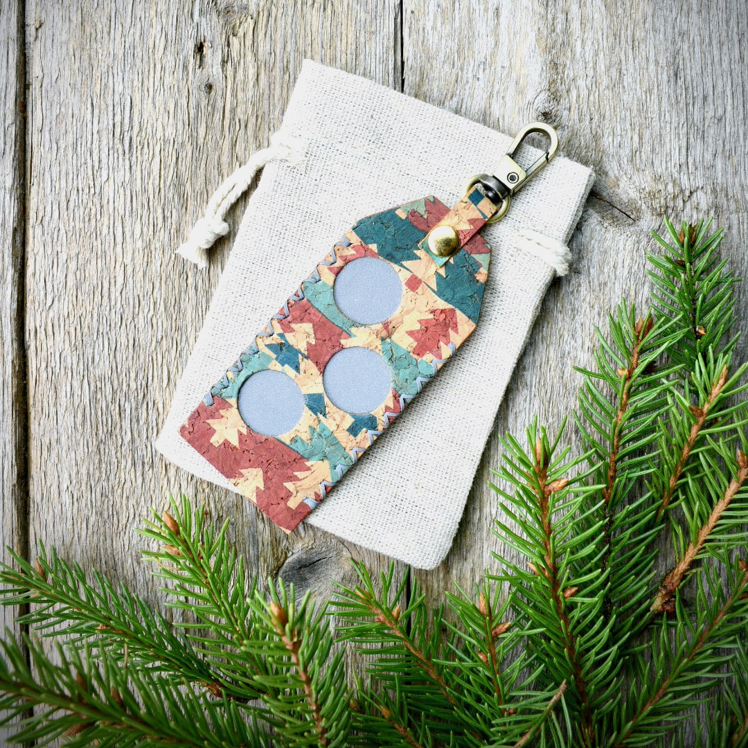 Nahkamainen korkkimateriaali on erittäin kestävää sekä vedenpitävää, ja sopii näin mitä parhaiten heijastimen materiaaliksi. Tarvittaessa heijastin on helppo pyyhkäistä puhtaaksi kostealla liinalla.