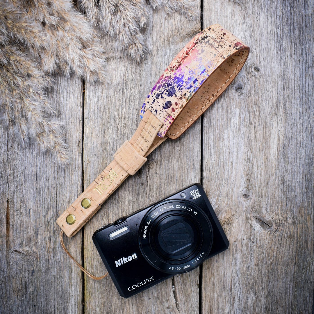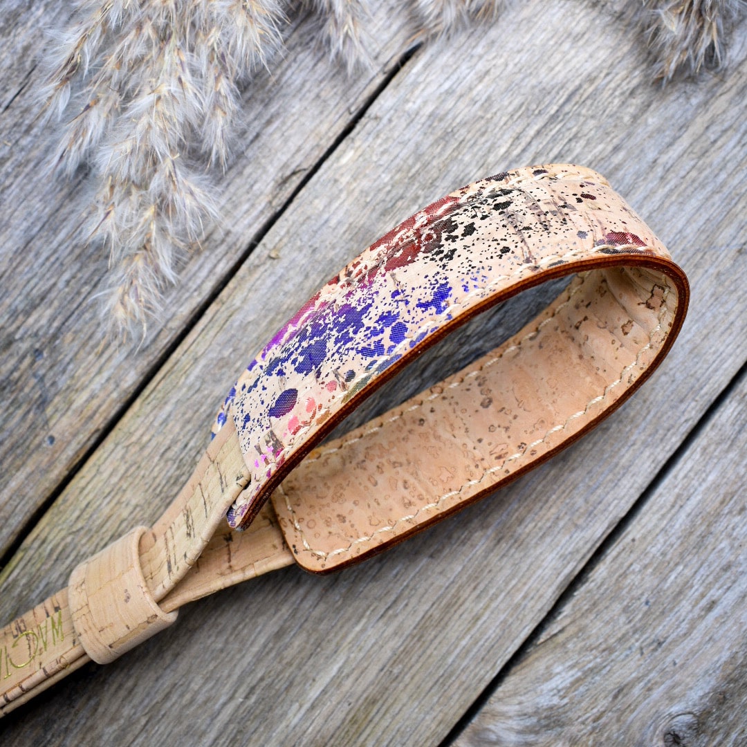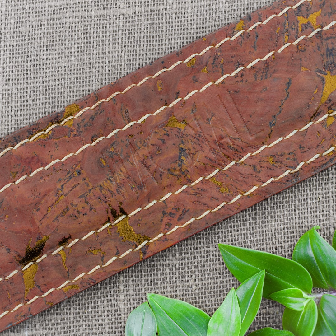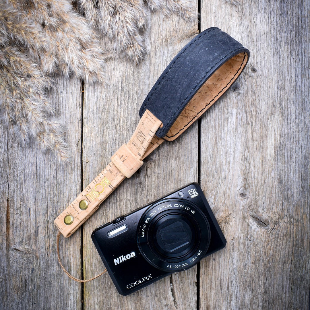 Korkkimateriaalin kuvion ja käsityön ansiosta jokainen kamerahihnamme on yksityiskohdiltaan ainutlaatuinen.