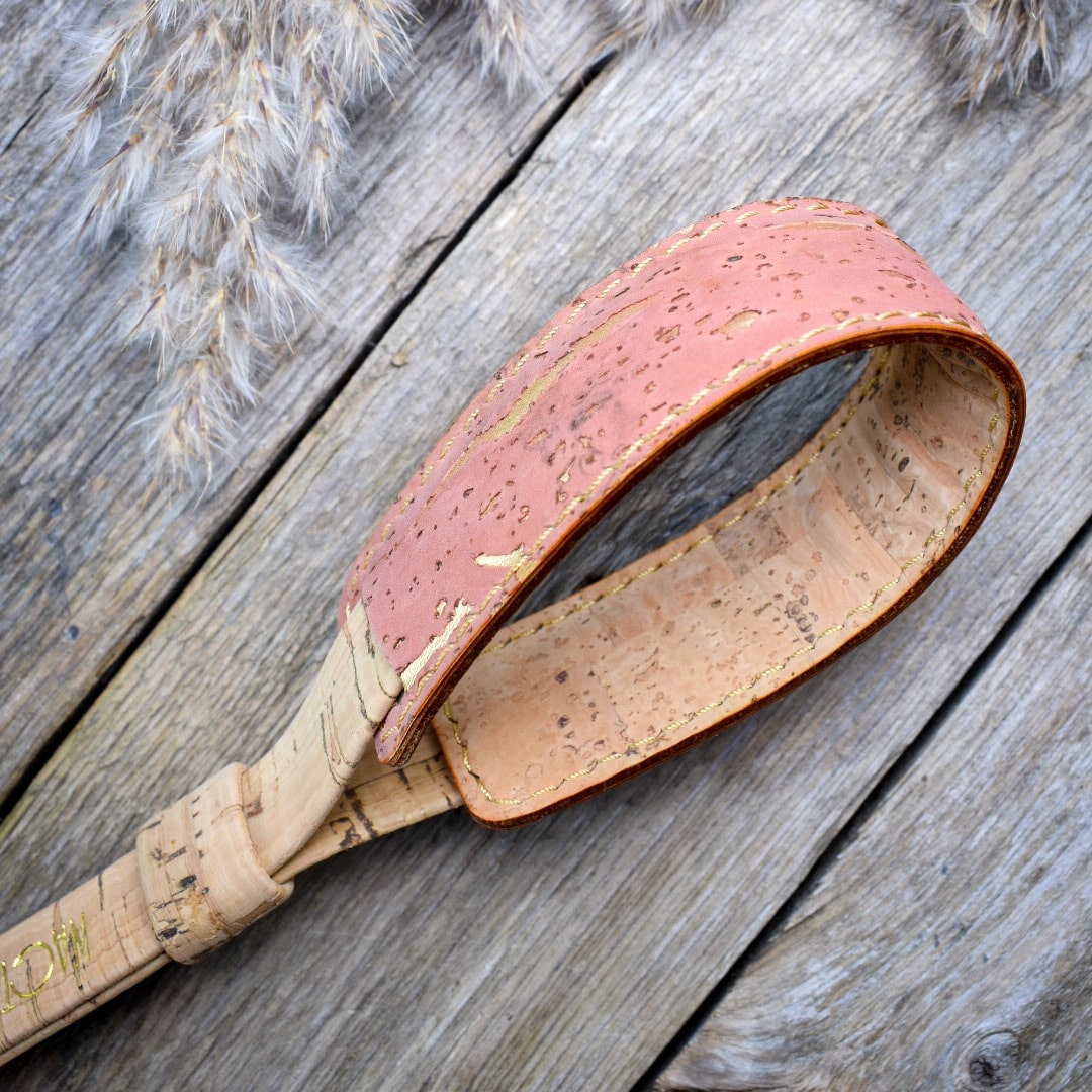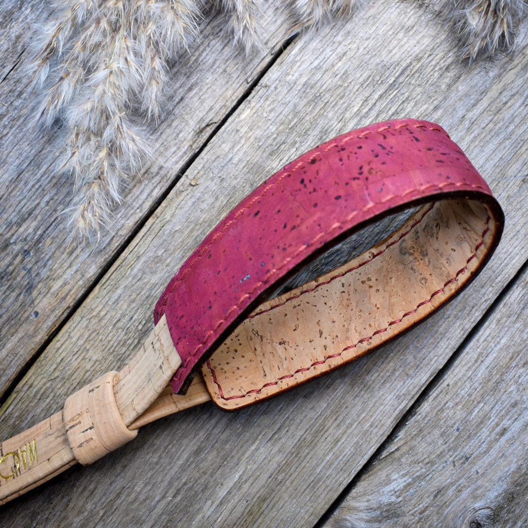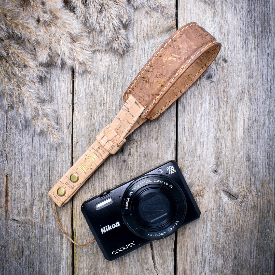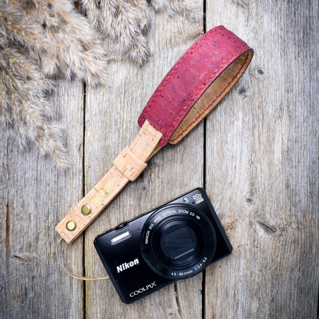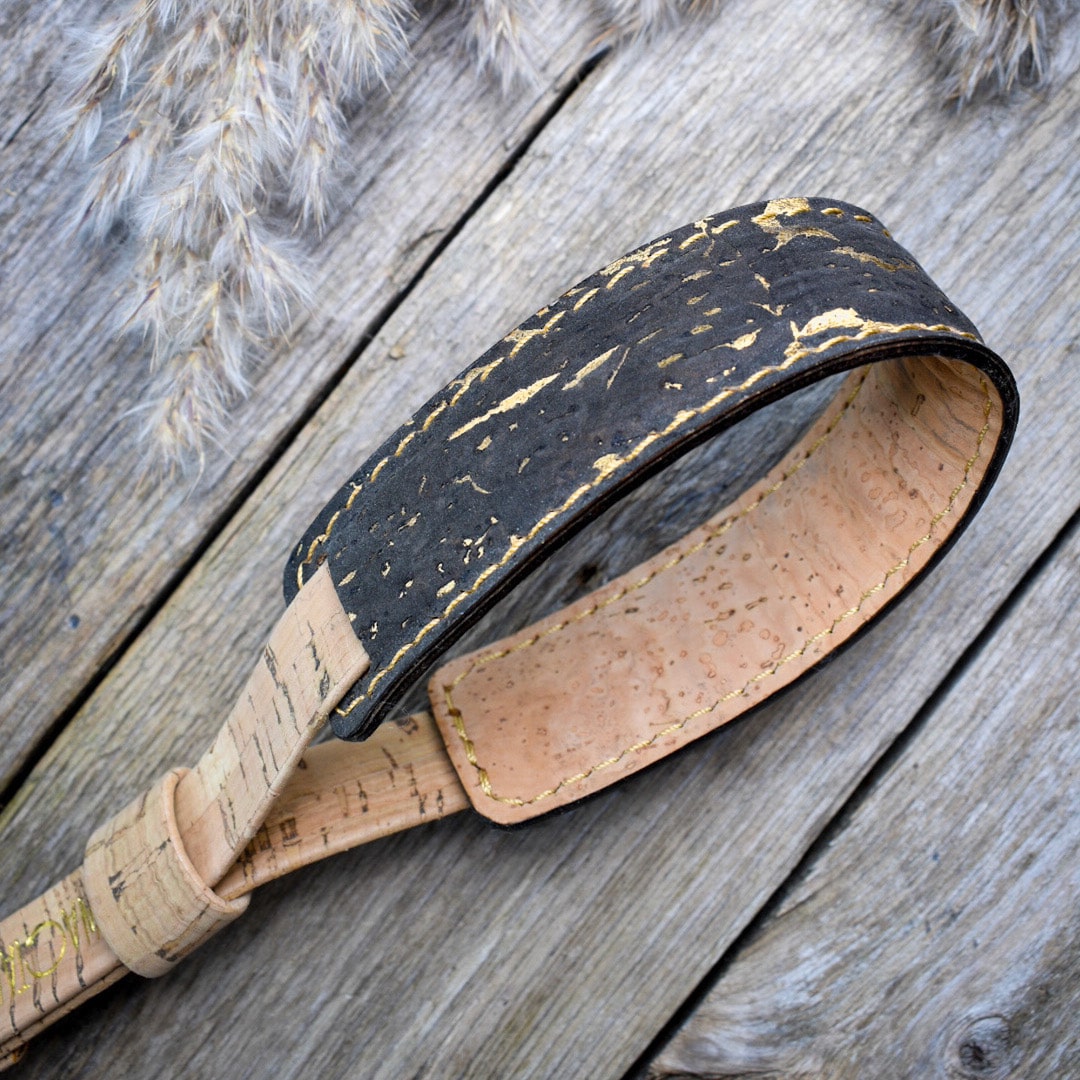 Korkkimateriaalin kuvion ja käsityön ansiosta jokainen kamerahihnamme on yksityiskohdiltaan ainutlaatuinen.