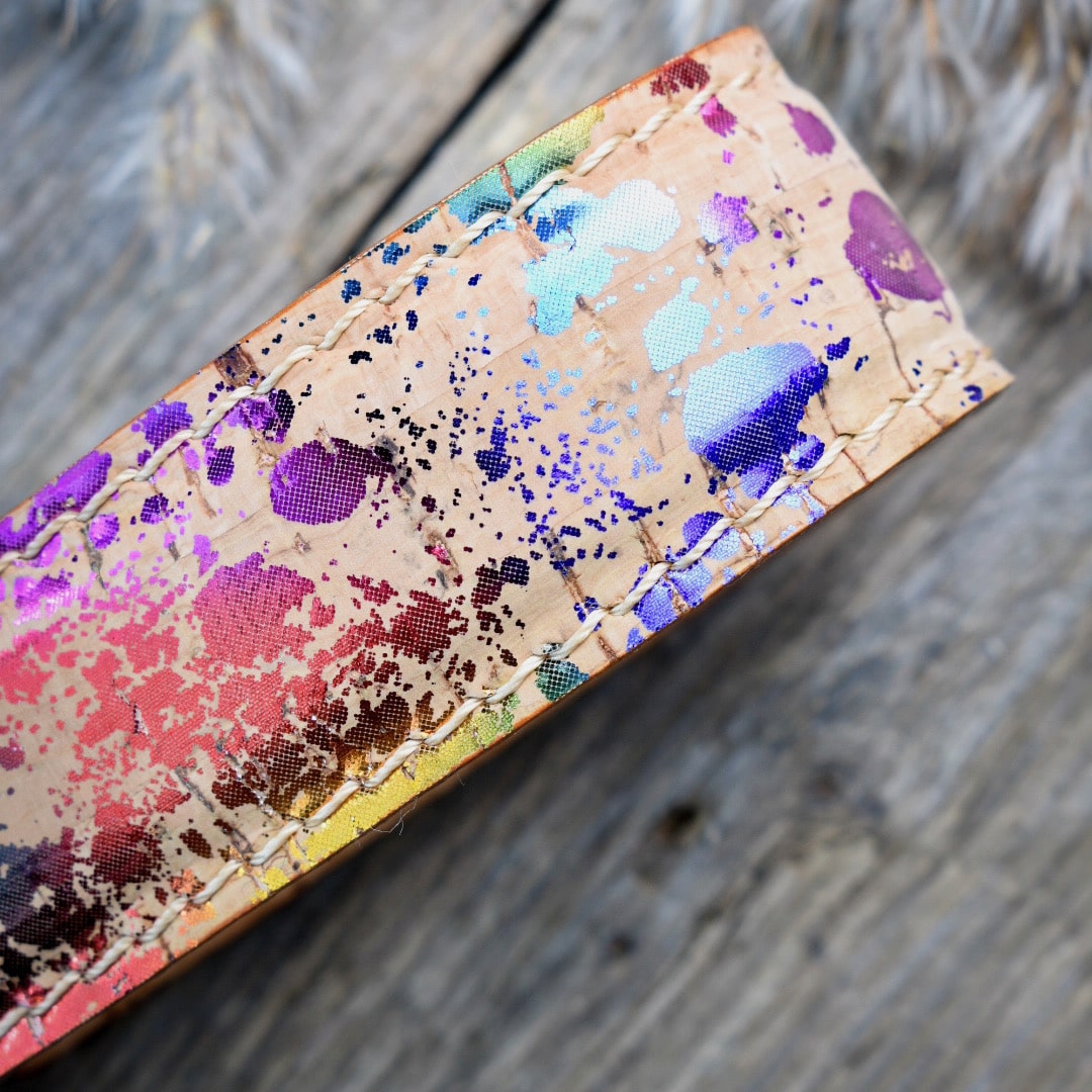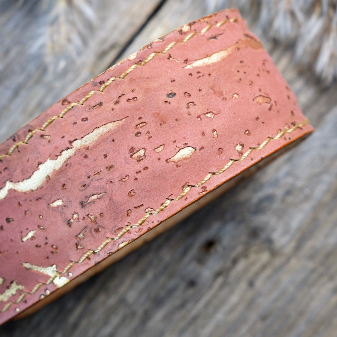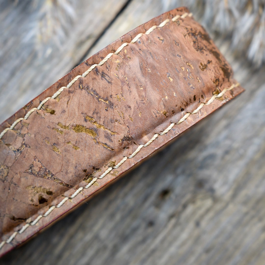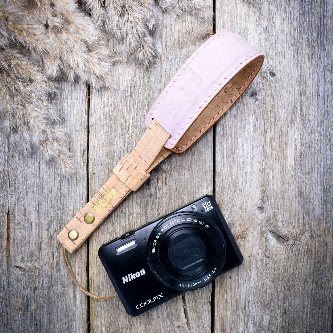 Korkkimateriaalin kuvion ja käsityön ansiosta jokainen kamerahihnamme on yksityiskohdiltaan ainutlaatuinen.